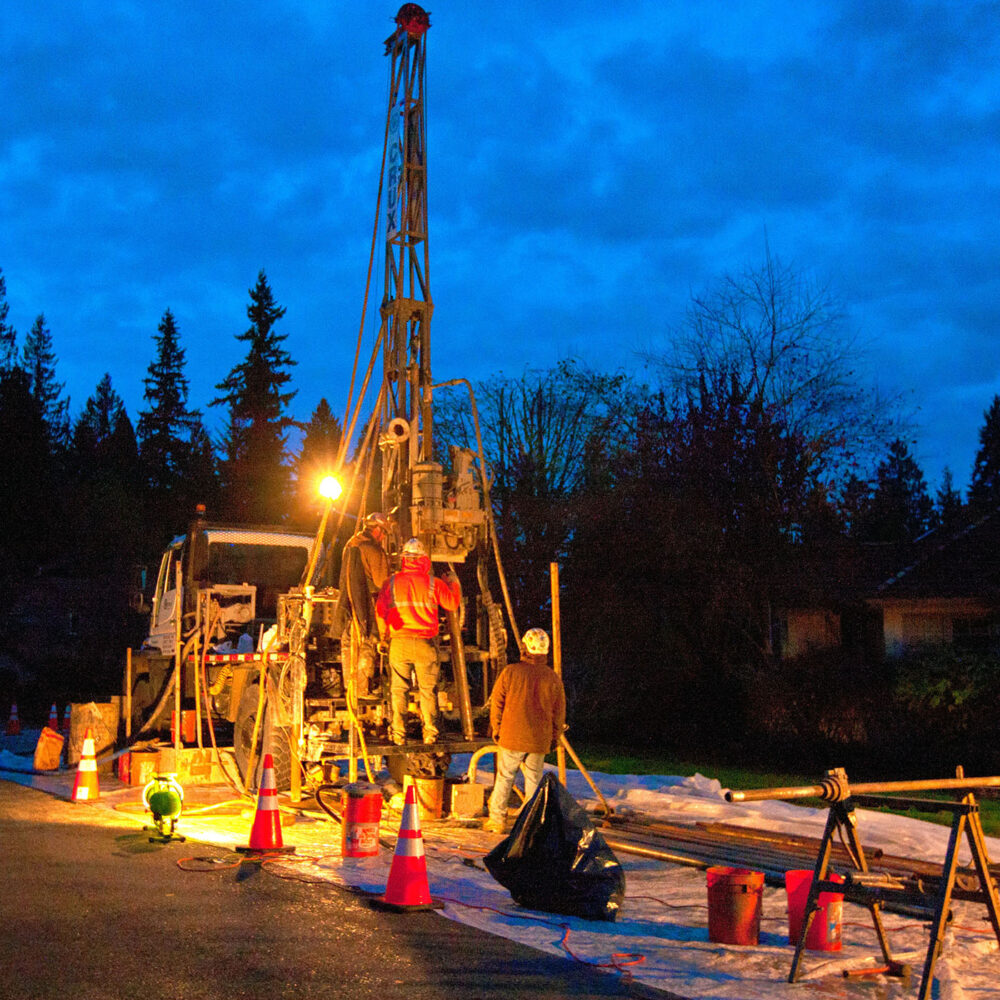 Crux provided core drilling and sampling at nine borehole locations on the project. All work was completed within residential neighborhoods in Bellevue and Issaquah, and required significant experience working in restricted and congested areas. Close proximity to surrounding homes required additional permitting and impacted work schedules. Noise ordinances and traffic control were in effect throughout the project.