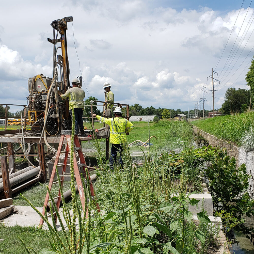 Construction challenges included drilling through groundwater, limestone and clay. At micropile sites, the complex geotechnical conditions resulted in the need to use both air and mud rotary drilling methods, sometimes alternating between the two at a single structure. Extended casing lengths and bond zones were also used to mitigate the challenging conditions.