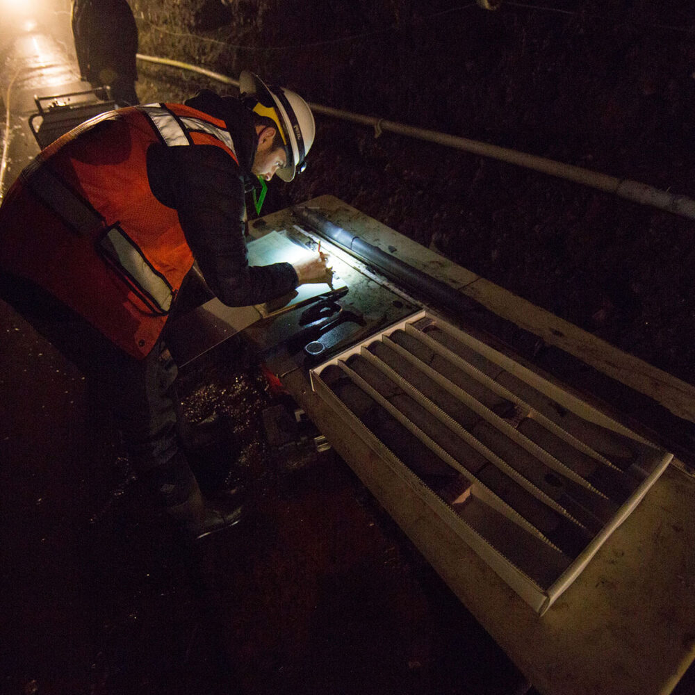 Challenges included setting up and drilling in extremely narrow locations with low overhead clearance. Crux’s compact equipment had to accommodate access points as small as 45 inches wide by 79 inches high, and had to operate with as little as 7 feet of overhead clearance. Additional project challenges included capturing and handling 100% of artesian water produced during drilling. Crux collaborated with the owner to design a unique system involving pumps, hoses, and settling tanks as large as 21,000 gallons. All drilling and instrumentation was completed successfully and ahead of schedule.